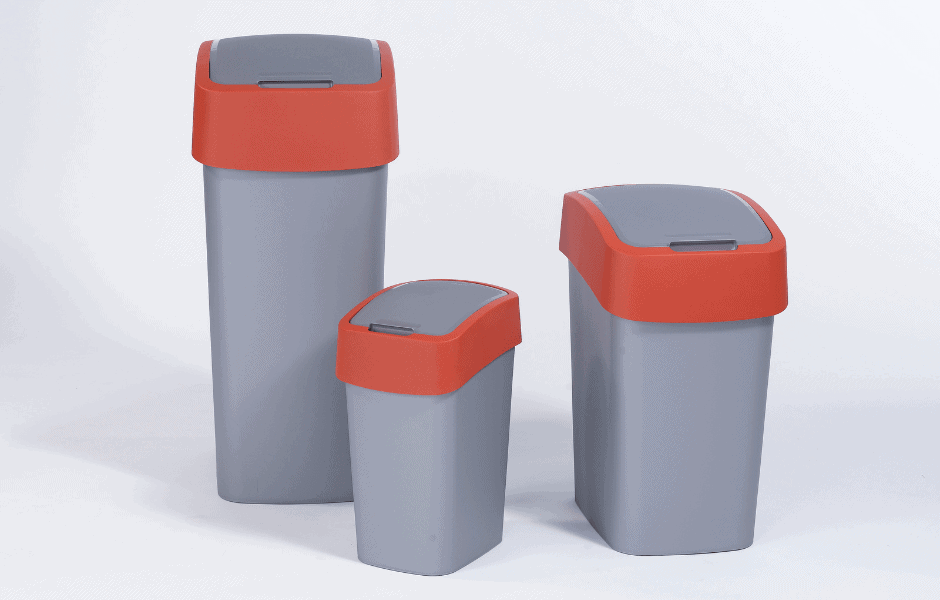 - Koši iz kolekcije Flipbin z različnimi barvami pokrovov za lažje ločevanje odpadkov.