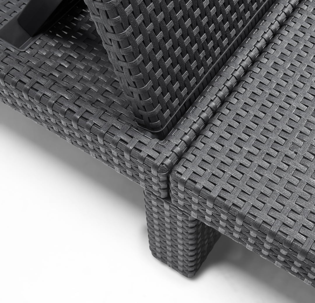 Vsi Keter izdelki so izdelani iz vodoodpornega, trajnostnega materiala, ki ne zbledi. Zagotavljajo prijetno izkušnjo na vrtu, balkonu ali terasi.