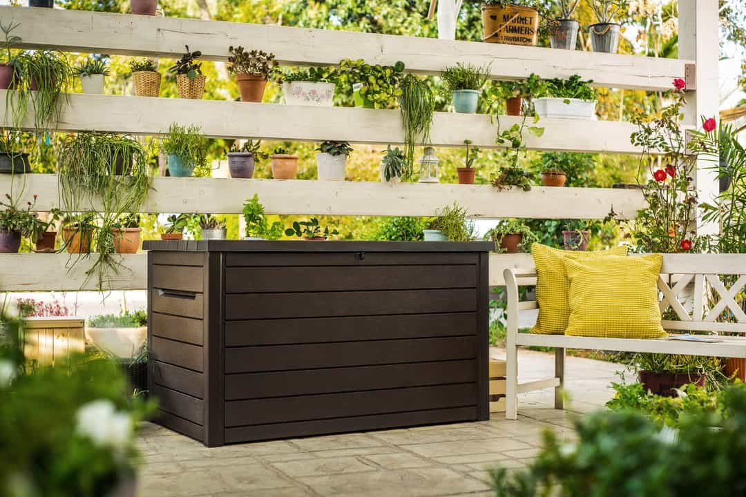 -shranjevanje vrtnih blazin, odej ali vrtnarskega orodja